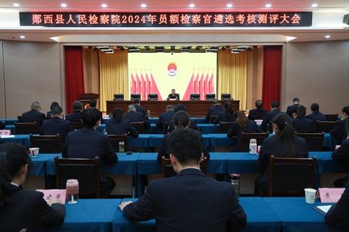 本网讯(通讯员 王歆雅)为保证员额检察官遴选工作公平、公正、公开,建设一支忠于党、忠于国家、忠于法律的过硬检察队伍,根据上级检察院关于2024年员额检察官遴选工作统一部署和本院遴选方案安排,日前,郧西县检察院召开2024年度员额检察官遴选考核测评大会。会议由院党组书记、检察长刘建斌主持,班子成员及全体在职在编干警参会。