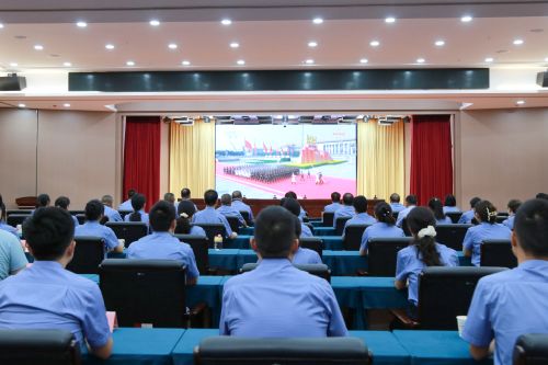 上午9时,伴随着雄壮的国歌声,阅兵仪式正式拉开帷幕。全体干警整齐列座,全神贯注通过大屏幕观看阅兵盛况。直播中,受阅部队在长安街整齐列阵,光荣接受中共中央总书记、国家主席、中央军委主席习近平的检阅。看着那屹立挺拔的军姿、列队整齐的方阵,全体干警无不心潮澎湃。