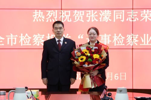 会议伊始,刘建斌为张濛同志佩戴“刑事检察业务标兵”荣誉绶带,并献上鲜花。全场响起热烈掌声,对其取得的优异成绩表示衷心祝贺。