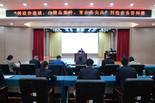 为深化拓展“干部素质提升年”、开展“铸政治忠诚、办精品案件、育业务尖兵”活动,进一步加强检察队伍专业化建设,提升青年检察干警专业能力,日前,郧西县检察院精心组织开展刑事检察业务答辩赛,15名来自不同部门的青年检察干警同台竞技、切磋交流、共同提升。